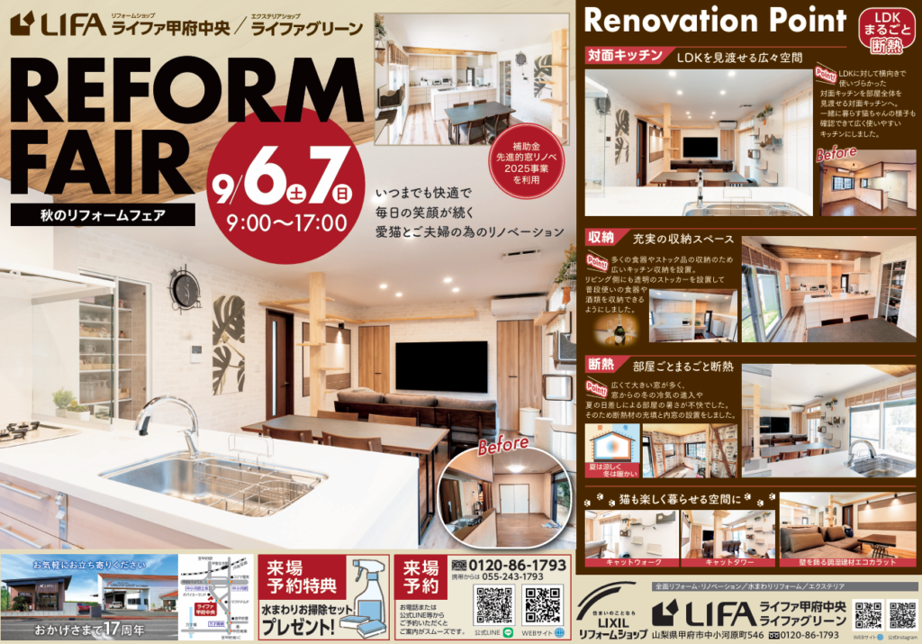 ライファ甲府中央では今週末『秋のリフォームフェア』が開催されます。