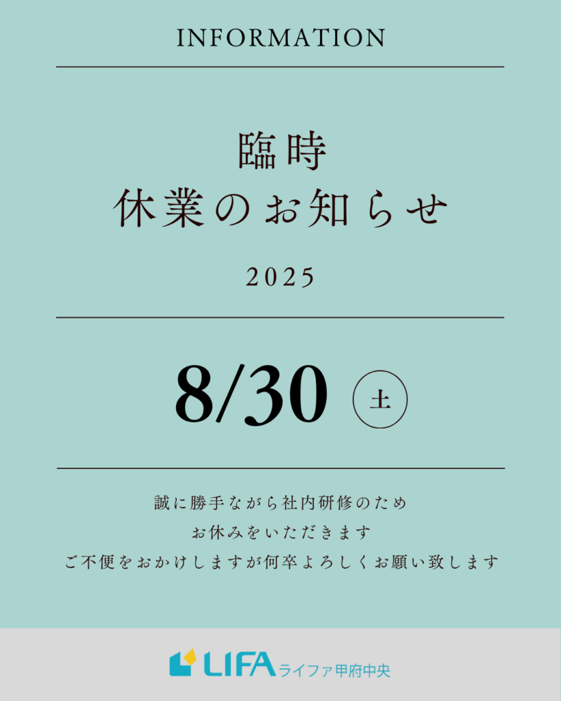 本日社内研修のため臨時休業とさせて頂きます。